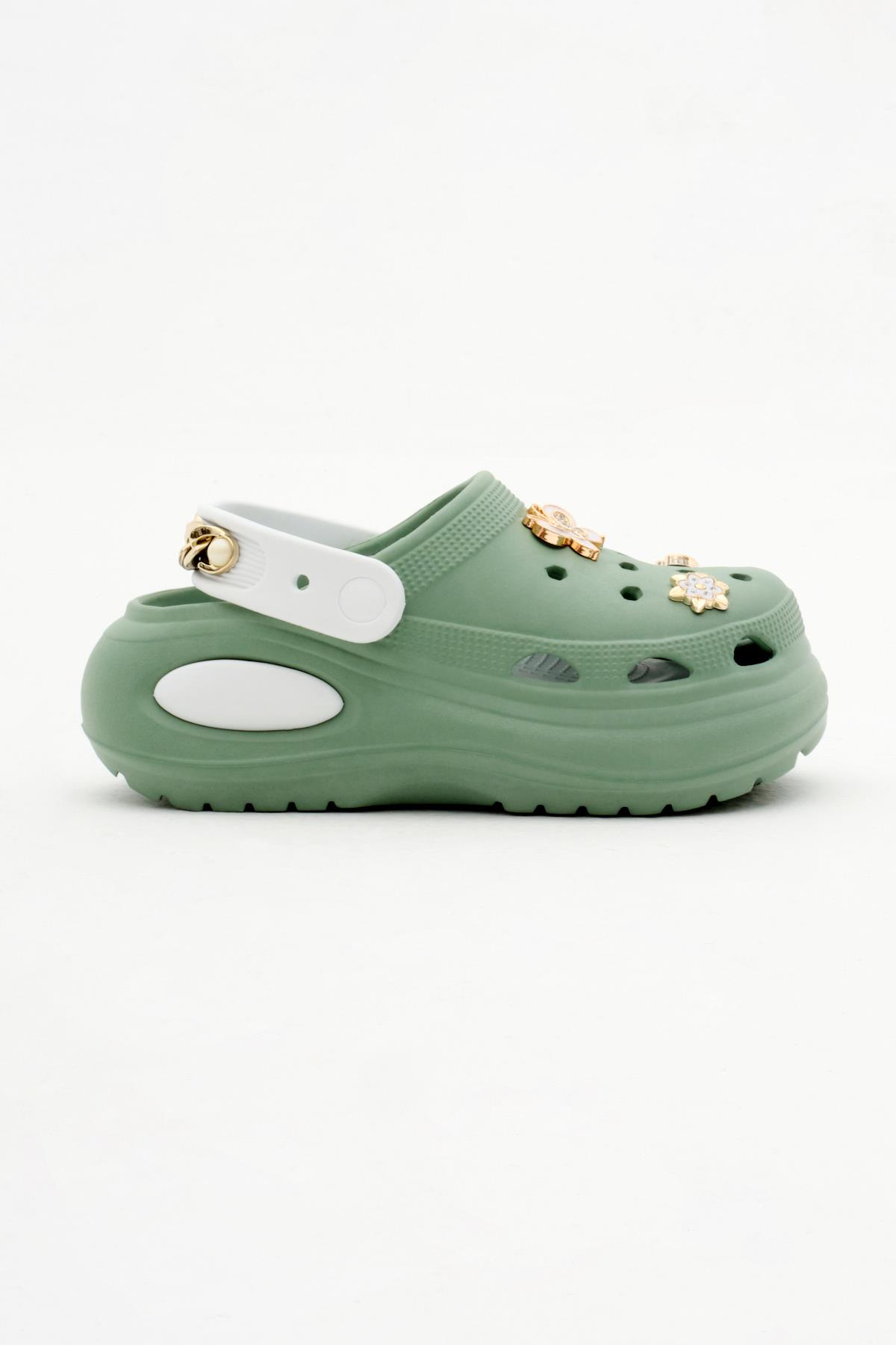 Çıkartılabilir Taban Zincir Detaylı Yüksek Taban Eva Kadın Yeşil Beyaz Sandalet TBODS020