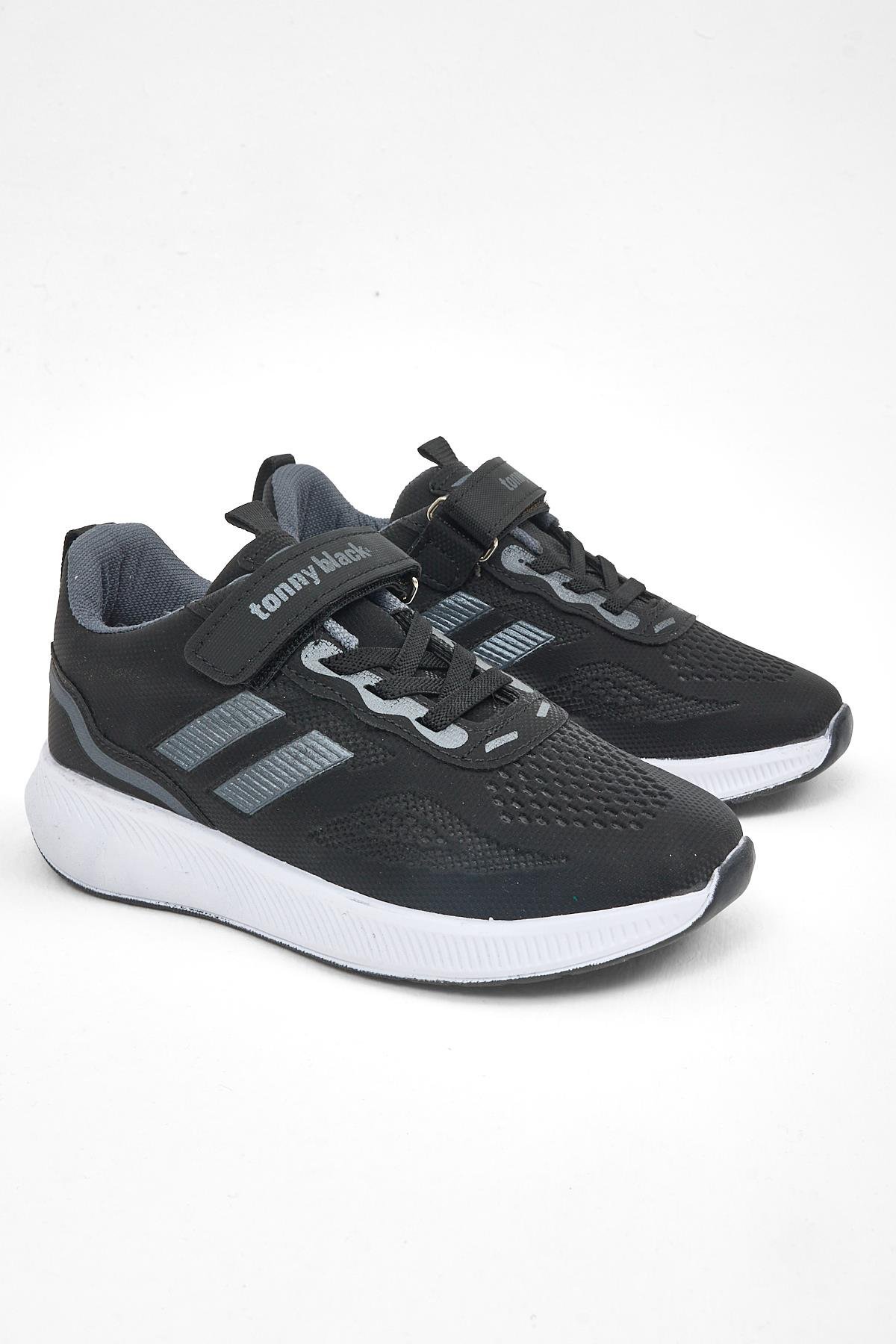 Eva Taban Yanı Şeritli File Detaylı Cırtlı Çocuk Unisex Siyah Füme Spor Ayakkabı TBTMKD035 (TBTMKD035)