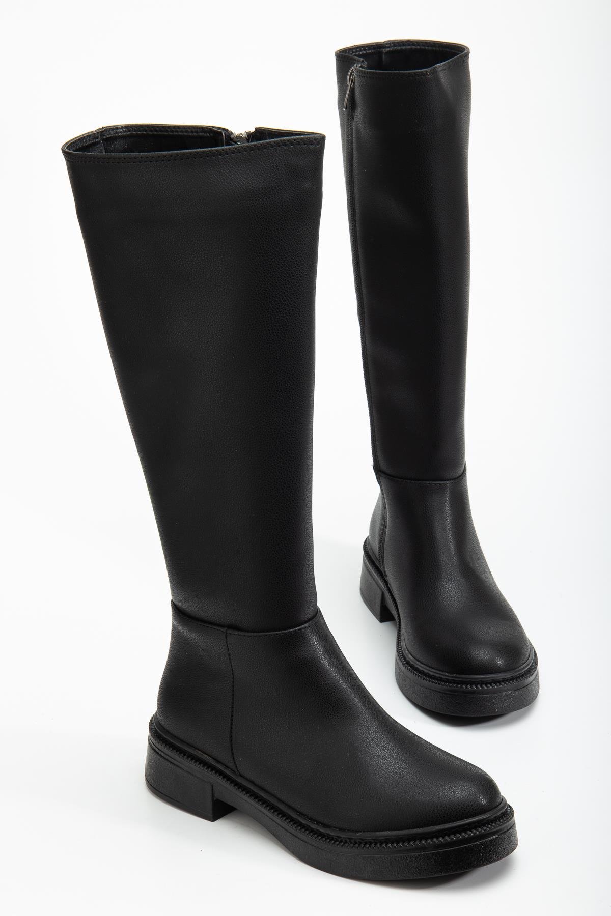 Kalın Termo Taban Fermuarlı Kadın Siyah Cilt Çizme TBMR095 (TBMR095)