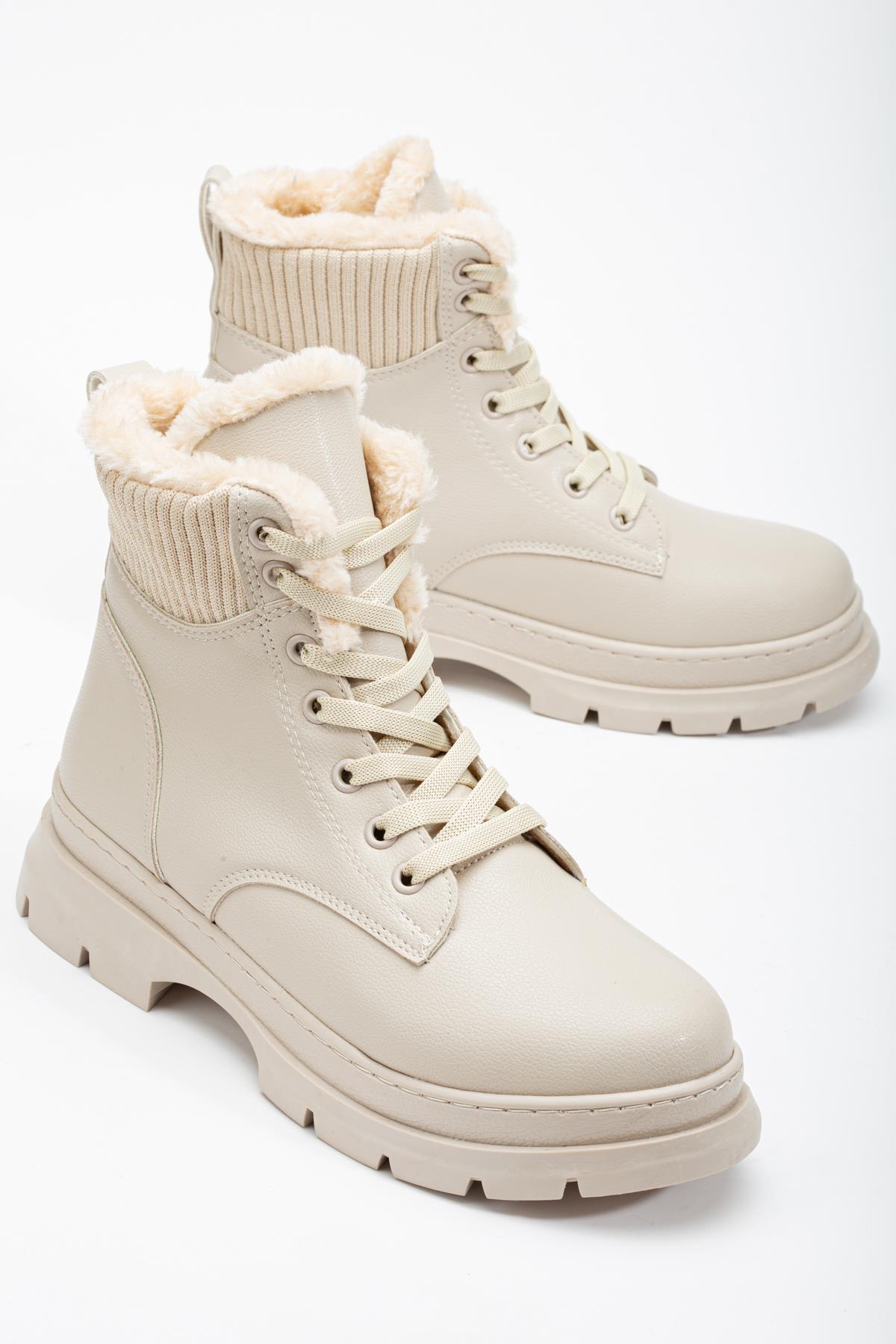Kalın Termo Taban Kürklü Bağcıklı Kadın Bej Bot TBACR3518 (TBACR3518)