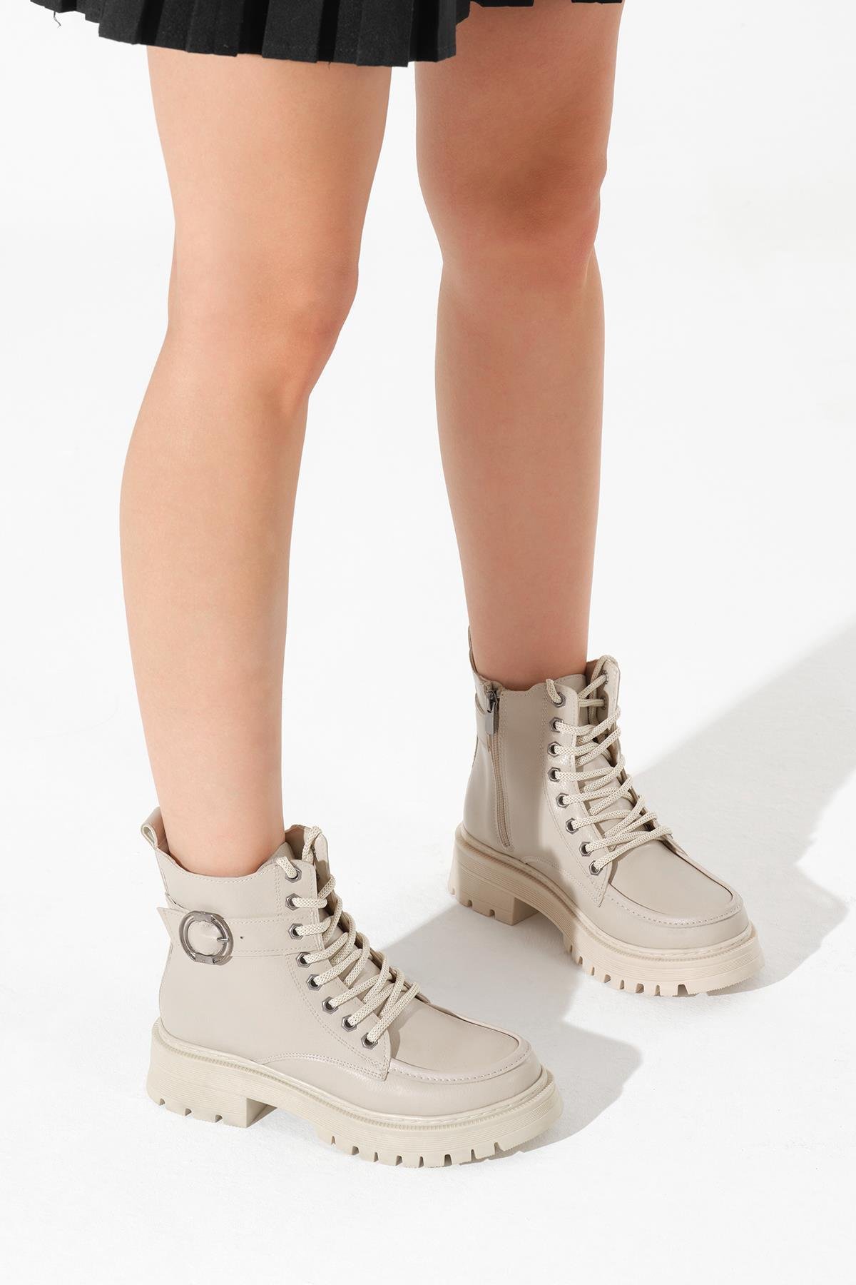 Kalın Termo Taban Yuvarlak Tokalı Bağcıklı ve Fermuarlı Kadın Bej Bot TBFZLCMC095 (TBFZLCMC095)