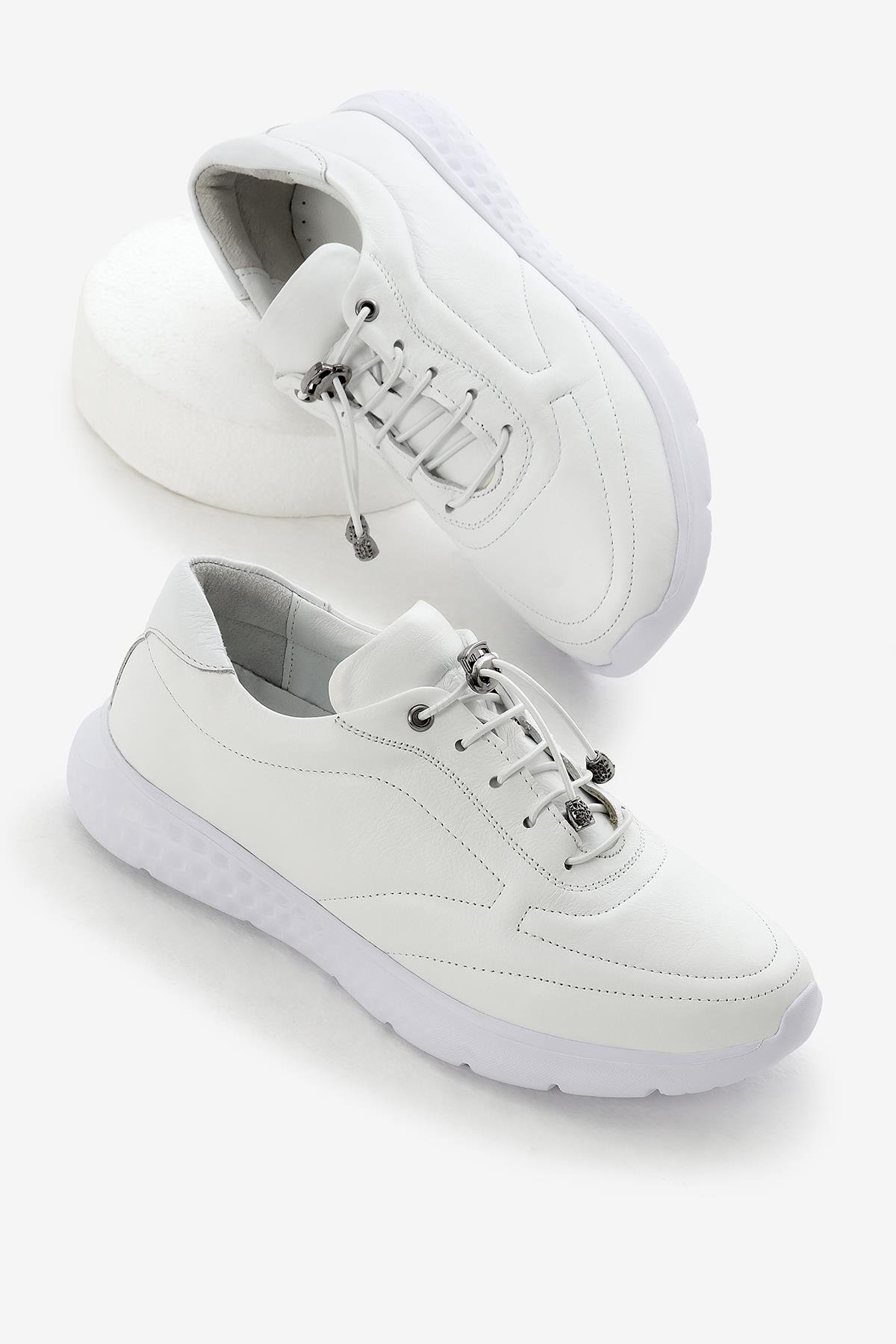 Poli Taban Lastik Bağcıklı İçi Dışı Hakiki Deri Kadın Beyaz Günlük Ayakkabı TBENP015 (TBENP015)