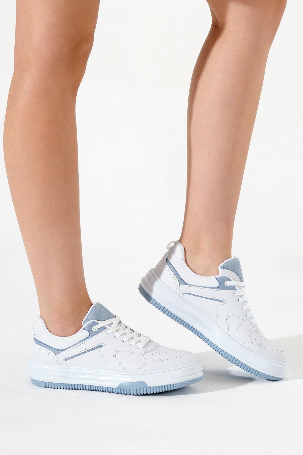 Termo Taban Bağcıklı Kadın Beyaz Mavi Spor Ayakkabı TBA230 (TBA230)